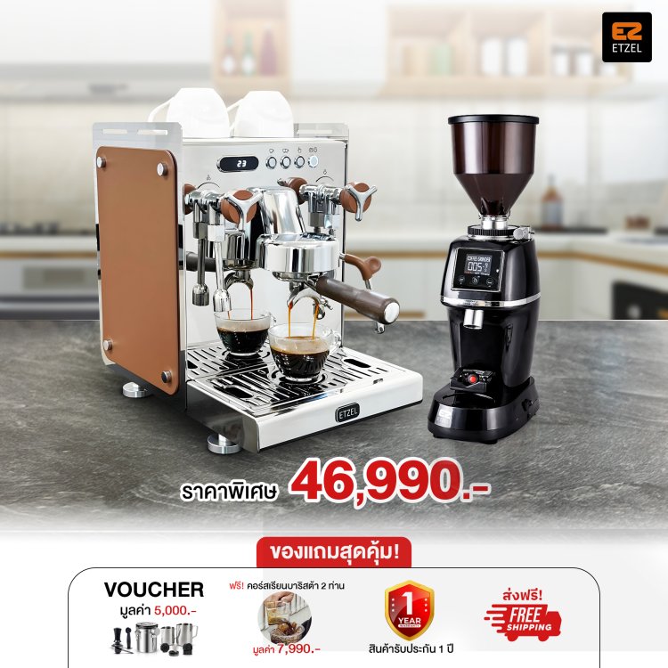 แต่ละเซ็ตคัดสรรรุ่นยอดนิยม เช่น เครื่องชงกาแฟระดับมืออาชีพ พร้อมเครื่องบดเมล็ดกาแฟ